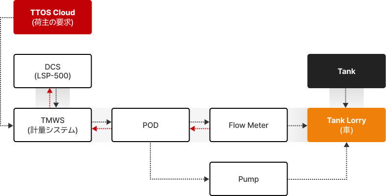 車両出荷 オンサンタンクターミナルはタンクローリーを利用した貨物の迅速かつ安全な入庫および出庫サービスを提供します。最新の設備と管理システムを通じて、正確な貨物処理と積載を保証し、顧客の貨物が目的地へ安全に出発できるようサポートします。 自動化 SYSTEM 01入車 02Order確認および登録 (貨主、車両ナンバー、出荷TANK、数量) 03出荷場(Rack) 進入 04空車計量 05PODパネル出荷指示Code入力 車両番号、油種、油槽別指示量確認 06Pumpスタート、出荷作業開始 07出荷作業終了 出荷作業終了確認、 満車計量 08伝票発行 09伝票承認後発給 10出車 이미지 크게보기